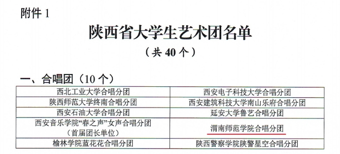 近日,陕西省教育厅印发《关于成立陕西省大学生艺术团的通知》(陕教体办〔2025〕8号),由我校音乐学院组织申报的“渭南师范学院合唱分团”成功入选,被认定为陕西省大学生艺术团合唱分团之一。